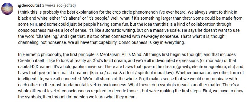 We have about 20 interviews lined up - mainly across the pond - relating to UFOs, paranormal activity, synchronicities and dreams connected to people making crop circles. Once humans are inserted into the narrative, the mystery is far deeper than many realise
