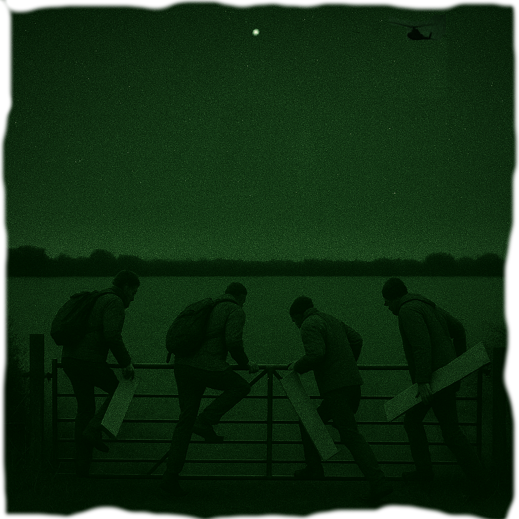 He wouldn’t go on record with me, but a military helicopter pilot was doing night manouvres over Pewsey one Summer when he spotted four people on his thermal imaging equipment, clambering over a gate into a wheat field, weighed down with circlemaking gear.